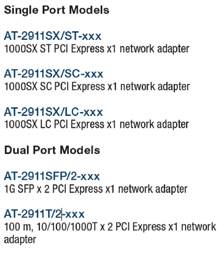 AT-2911SX/LC AT-2911SX/SC AT-2911SX/ST AT-2911SFP/2 AT-2911T/2 安奈特网卡批发TEL:13910098771