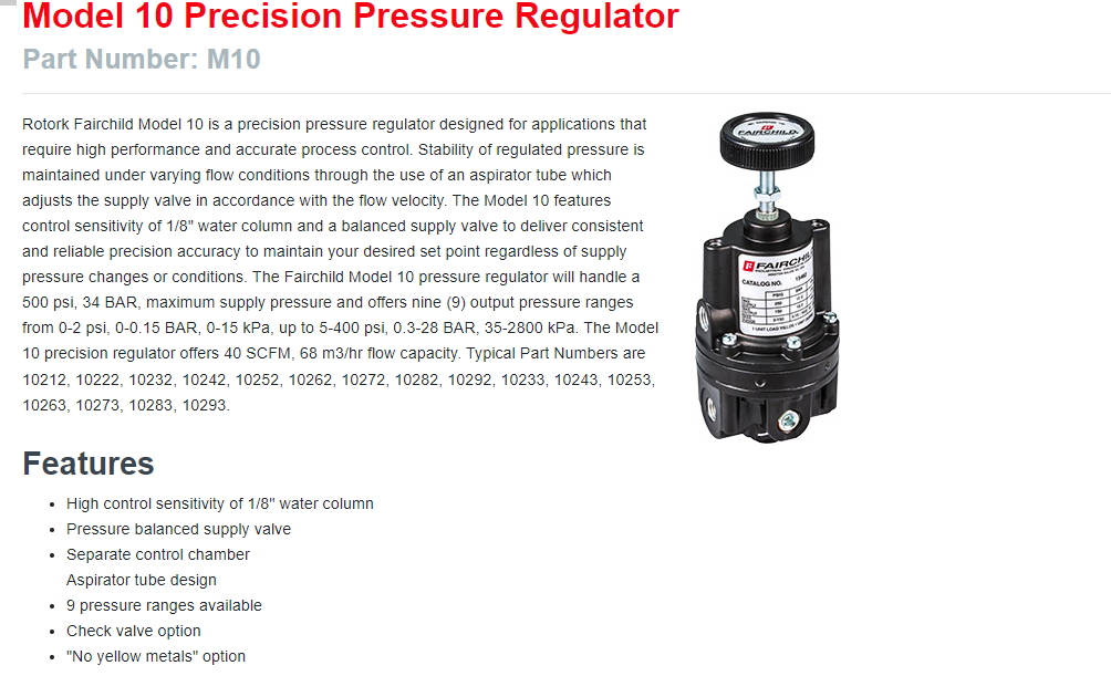 FAIRCHILD调压阀美国仙童阀精密阀10262CH压力平衡阀高灵敏度