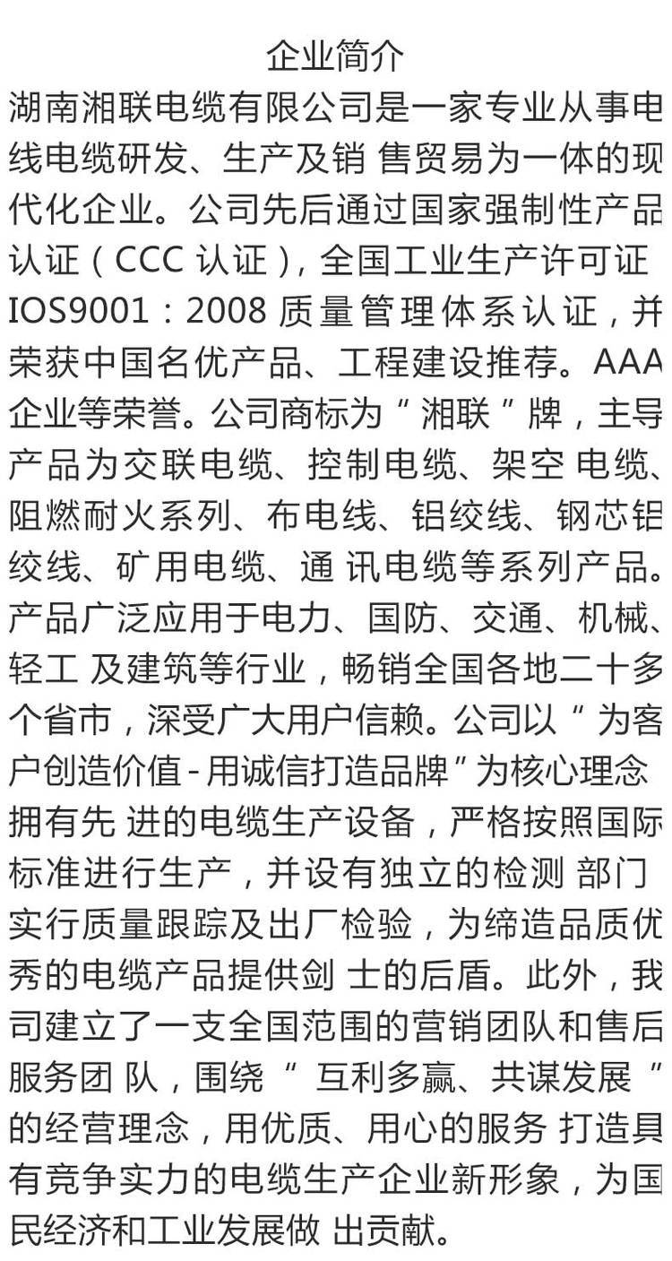 商铺名称:湖南湘联电缆有限公司