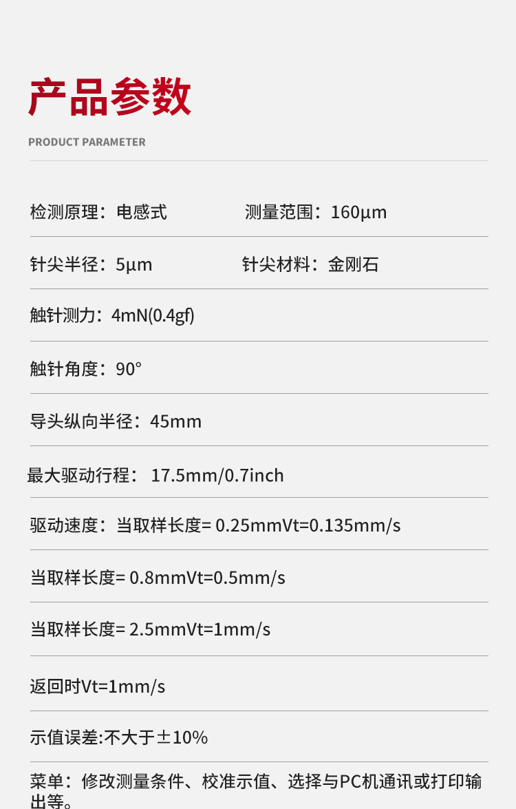 驱动速度: 当取样长度=0.25mmVt=0.135mm/s