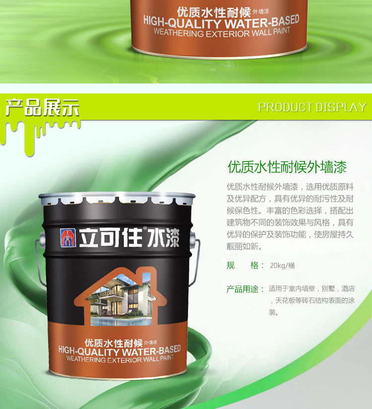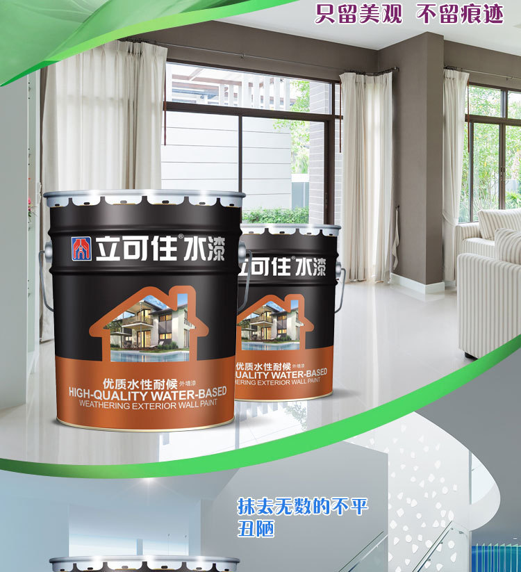 立可住水性耐候外墙漆 外墙乳胶漆 优质水性外墙漆是采用进口原材料精细加工而成乳液 具有优异的耐污性及耐候保色性 抗碱 耐擦洗等特点 现货供应 欢迎订购
