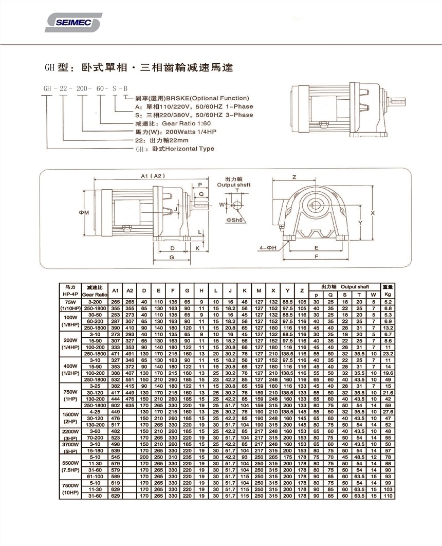 • 规格:GH系列