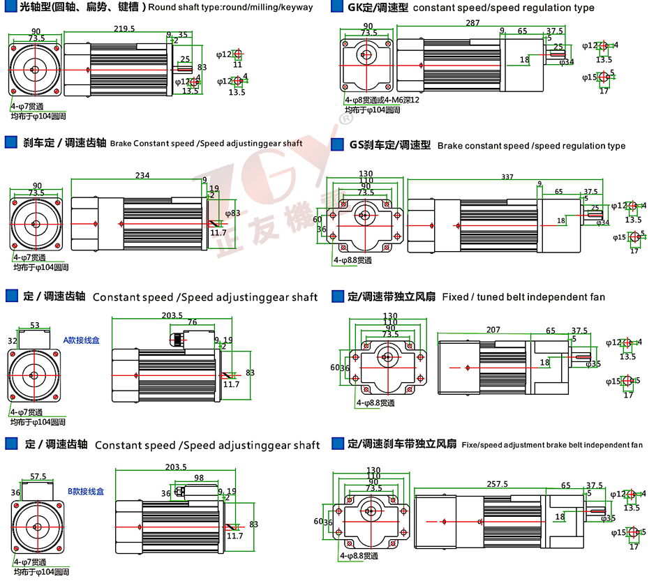 \ \电机轴15MM/18MM,电压有单相220V、三相380V/220V,有调速、定速、光轴、刹车等等,购买前请与客服联系