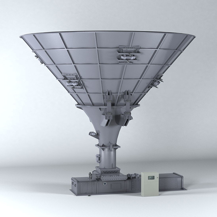 分级疏导防堵型物料仓采用悬挂振动分级疏通的防堵理念,从整体上改变了传统物料仓的结构形式。通过悬挂方式使物料仓成为活动仓体,使物料进行有效的排空。清除仓壁的结团。采用分层振动方式, 使物料下料受控。有效的杜绝段煤的状况,同时采用上方清仓振打装置,有效的消除上方固定斗体结团、蓬料的现象,从根本上解决物料仓下料不顺畅、堵塞的问题。