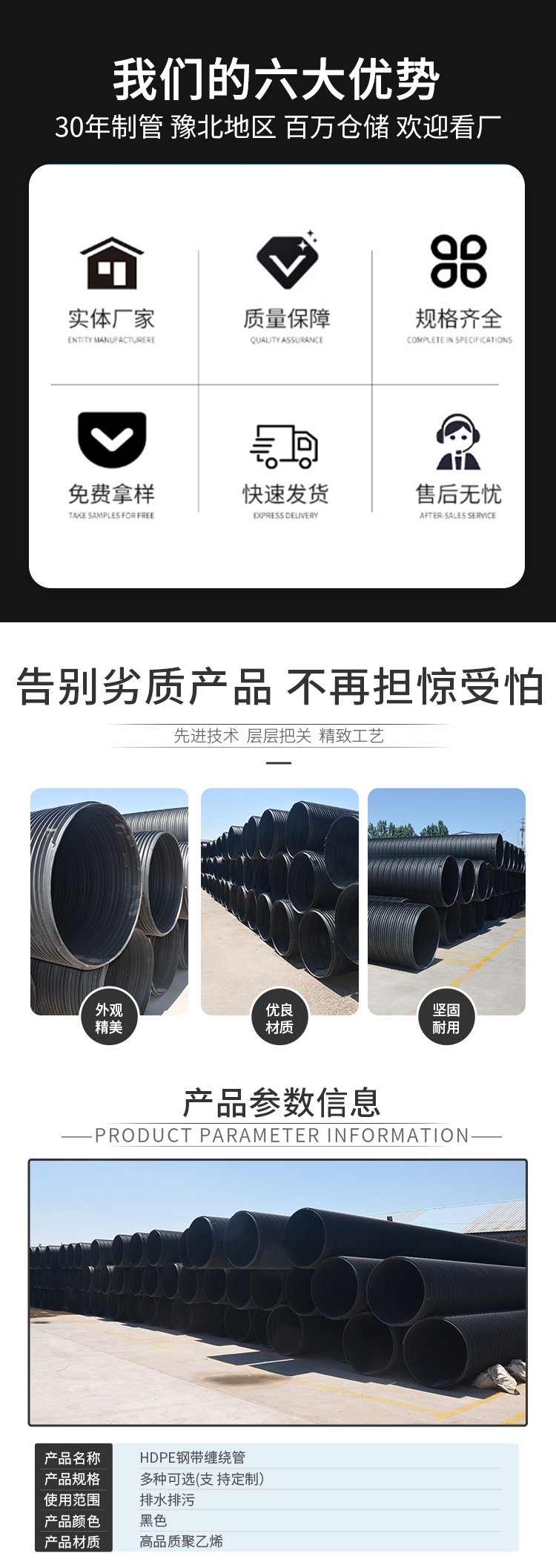 品名 | HDPE钢带缠绕管 | ||