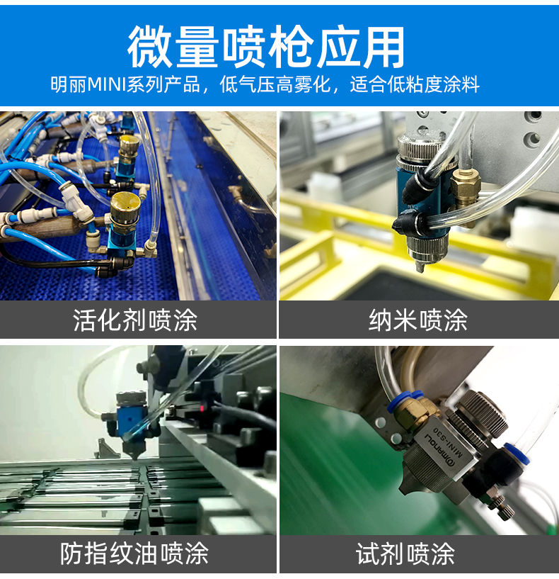 适用范围 | 水性、油性微量涂料,小型玩具、防指纹油等喷涂 | ||