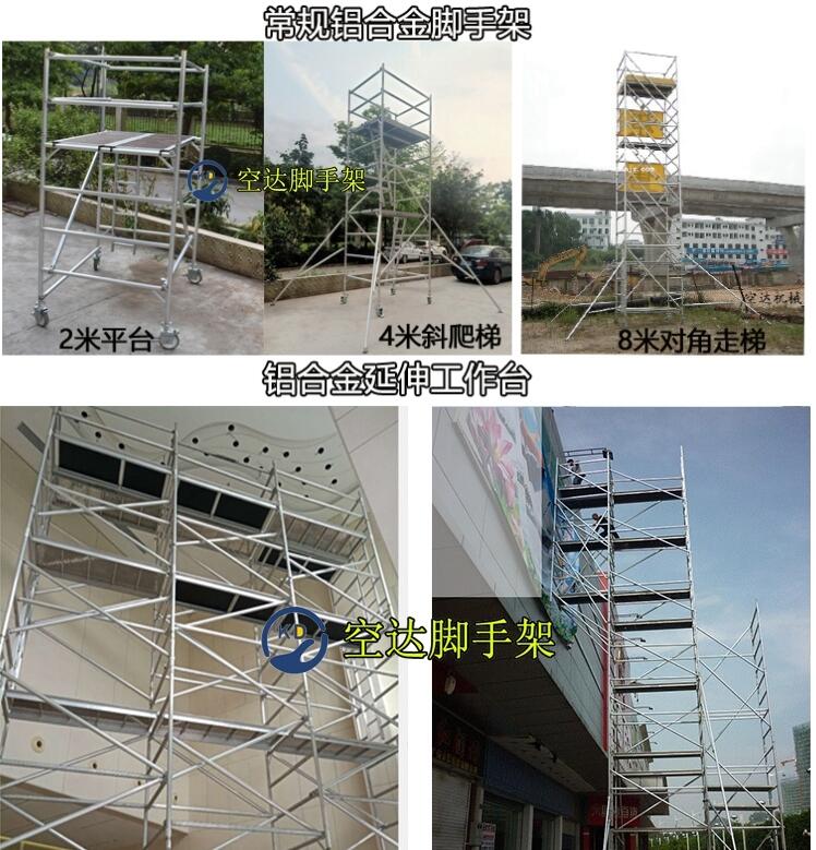 在室内铝合金脚手架移动平台可用于地铁站,商场,超市,酒店,房屋装修,电影院,礼堂,会议室等等,室外可用于建筑工地,桥梁架,高铁立交桥,节日城市街道装扮等等。