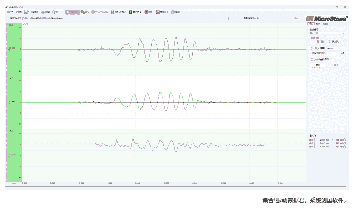 在分析软件中导入数据后,自动转换为位移数据并显示。如果使用频率过滤器和各种判定功能,数据的判断变得加。