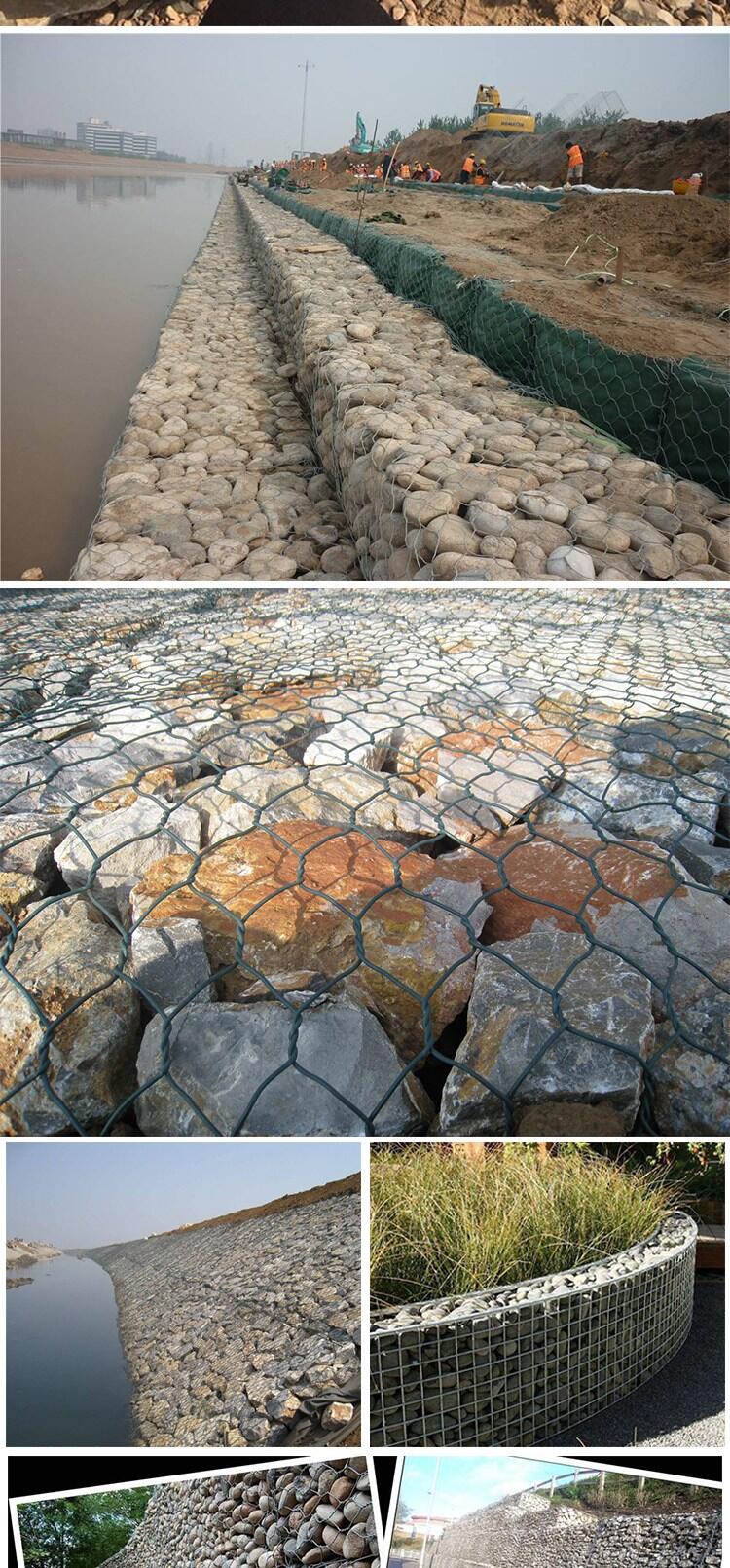 石笼网可用于边坡支护、基坑支护、山体岩面挂网喷浆、边坡植生(绿化)、铁路高速公路隔离护拦网,它还能制成箱笼、网垫,用于江河、堤坝及海塘的防冲刷保护,水库、河流截流用网箱。