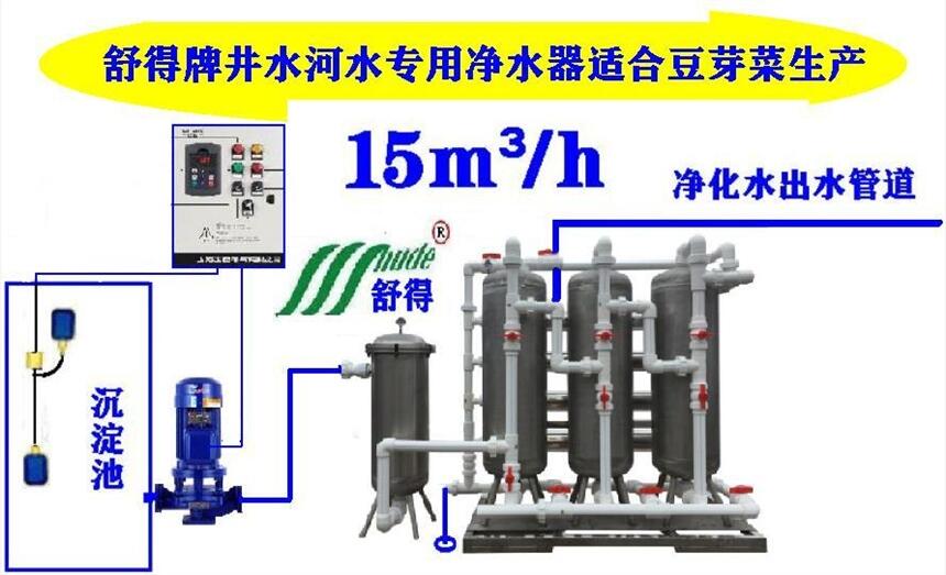 我们是舒得水处理设备生产厂家、业生产净化自来水井水河水的深度净化水处理设备、净水设备大小规格齐全,自来水也好井水也好河水也好经过舒得净水机处理后都是标准的矿化水直饮水纯净水也是无菌水、用这样的水生长出来的各种豆牙菜不会给您带来任何损失而只会给您带来利益、因为卫生提高上去了效益能差吗对吧。希望全国生产豆牙菜的生产基地生产厂家考虑配置舒得牌大型净水器、目湖北省有多家配置了我们的设备用于井水净化来生产各种豆牙菜、特别是武汉市那边用的比较多、全国吃到他们生产的各种豆牙菜得感谢他们因为他们确实走近步。下面给大家介绍介绍净水设备的情况;