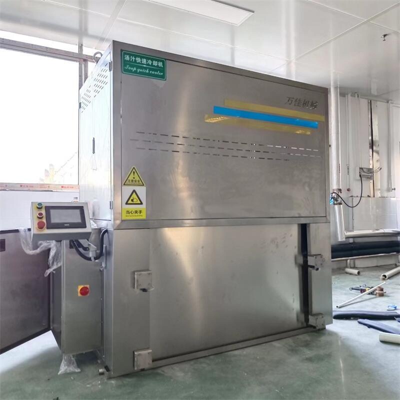 目前多循环汤汁快速冷却机是比较成熟的一款食品降温设备,各种不同类型的汤汁可以按实际情况进行改进定制。比如卤肉类汤汁里同有肉有汤,可以在内循环时采用缓循环模式,而纯汤汁可以进行速循模式。
