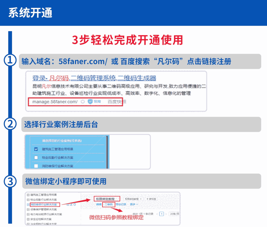 通过凡尔码平台实现消防防火巡查系统搭建,将防火巡查点罗列生成二维码,粘贴现场;微信扫一扫即可实现巡查管理;