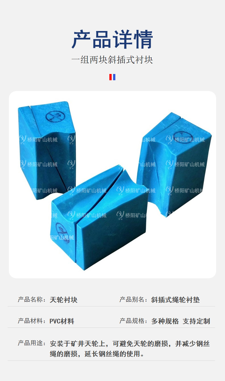 天轮衬块又称:钢丝绳用导向轮衬块。