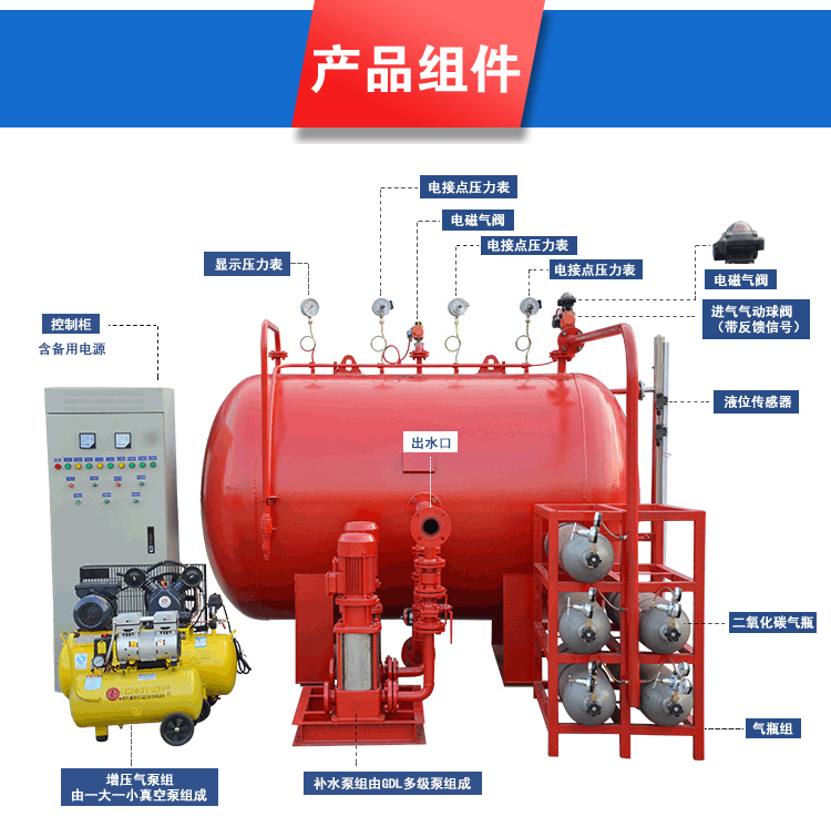 气体顶压 邦裕得给水设备D12/30-18-BYD 性能可靠 消防气体顶压设备 额定容量 | 1800L | ||