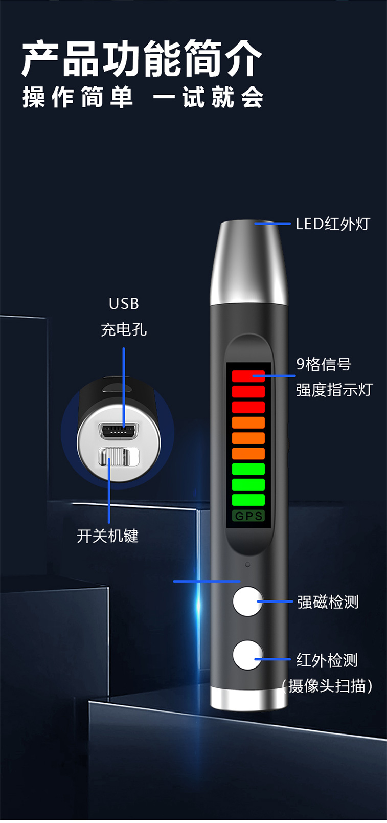 gps信号探测器摄像头红外线智能检测仪防监控反偷拍酒店防窥S16
