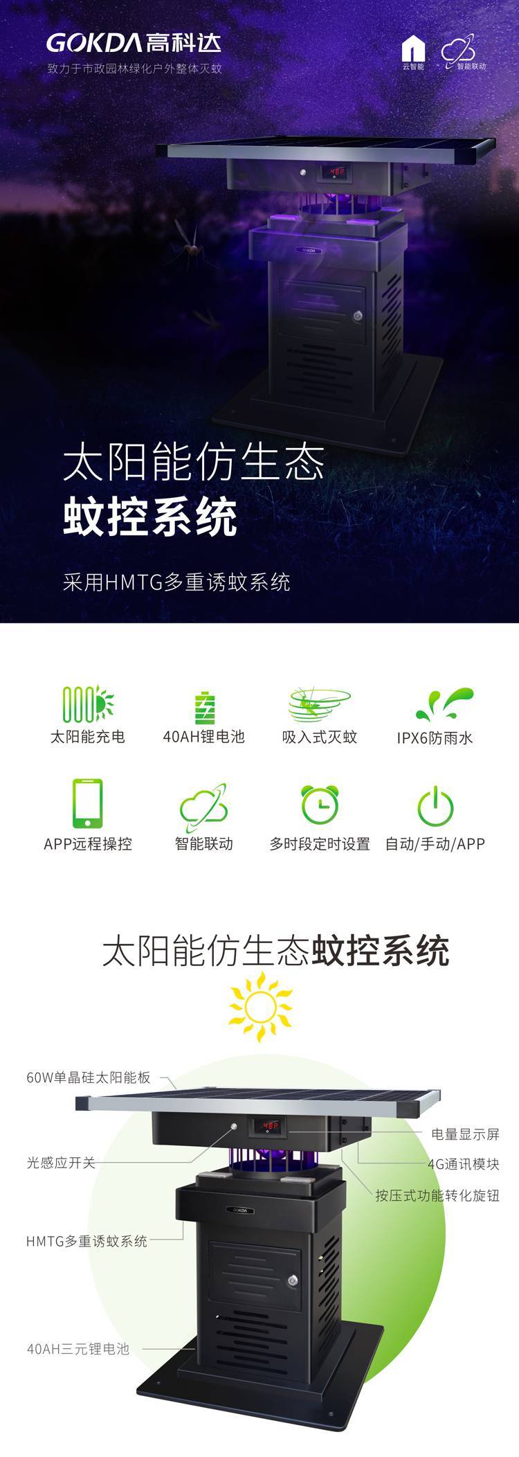 GOKDA高科达太阳能灭蚊灯仿生态蚊控系统H-BS700(太阳能)户外灭蚊器捕捉白纹伊蚊太阳能灭蚊器