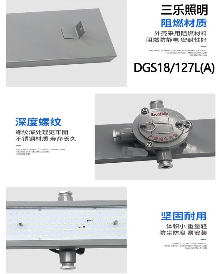 2.外壳采用高压压铸铝成型壳体,强度高,抗冲击,表面高压静电喷塑,耐腐蚀,耐高温、耐老化性能强,玻璃保护灯罩为钢化玻璃,透明度好,高硼硅,耐冲击,优异的橡胶密封件, 能在易燃易爆场所安全工作。