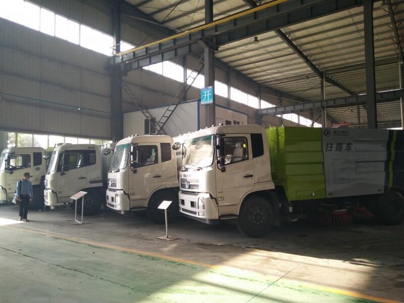 程力公司生产的扫地车解放扫地车、江淮扫地车、庆铃扫地车、东风多利卡扫地车、福瑞卡扫地车、东风145/153扫地车、天锦扫地车等等!程力扫路车采用中置四扫刷、吸口后置的布置方式,使得整车结构布置简捷、清扫效果良好。该车的垃圾箱及水箱为全部采用超厚不锈钢材料制作;垃圾箱与水箱为整体结构,水箱在垃圾箱的底层使垃圾箱底板预倾角高达12°以上,便于垃圾倾倒干净。垃圾箱顶部设置了导流槽及较大面积过滤网,能够充分提高降尘效果,使的垃圾堆积均匀,增加有效容量,减少因轻浮物堵塞滤网而产生的空气阻力。
