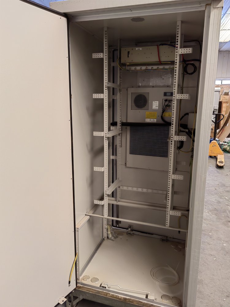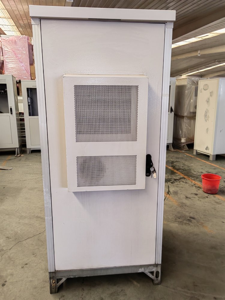 新型户外一体化节能机柜是一款安全、可靠、防盗性能较强、噪音低、散热效果好、占用空间小的好产品。此产品还有一特点就是可以满足快速建站,把产品输送到站点,把三个舱体安装完成后,把电源线与预留好端子对接,电源,热交换器,空调,等设备就可以使用,无需现场安装布线。一体化机柜适合在户外境,如公路边、公园、楼顶、山区、平地安装的机柜,机柜内可安装基站设备、电源设备、蓄电池、温控设备、传输设备及其他配套设备或为以上设备预留安装空间及换热容量,能为内部设备正常运行提供可靠的机械和环境保护的机柜。一体化机柜由蓄电池柜、电源柜、设备柜组成,充分利用每个机柜内部可用空间。户外机柜选址时选择通风较好的区域,安装于空旷地带或楼面上,尽量不要安装于居民楼道内或居民房间内,以免影响通风散热效果,以及设备运行行噪音扰民;安装时必须有可靠的槽钢底座或水泥墩座,远离低洼地带及高粉尘区域,有合格的接地排。