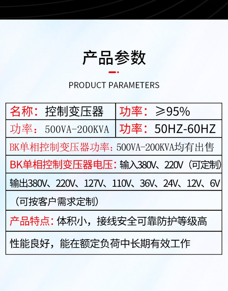 产品参数 | |||