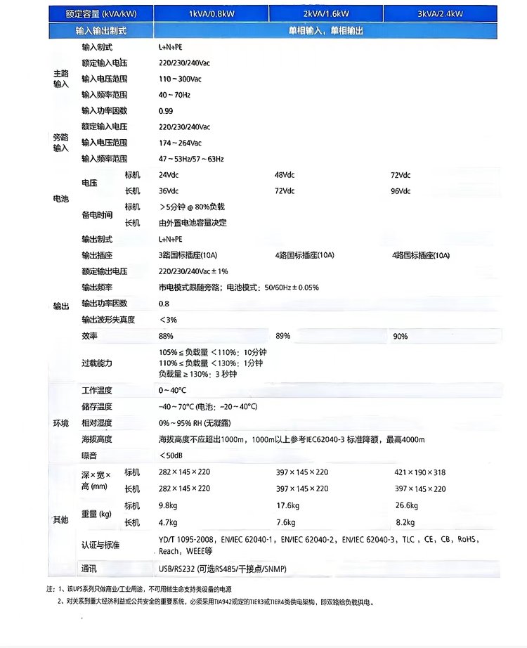 华为UPS电源2000-A-1KTTS 1KVA/800W机房停电稳压 备用在线式 品牌 | 华为 | ||