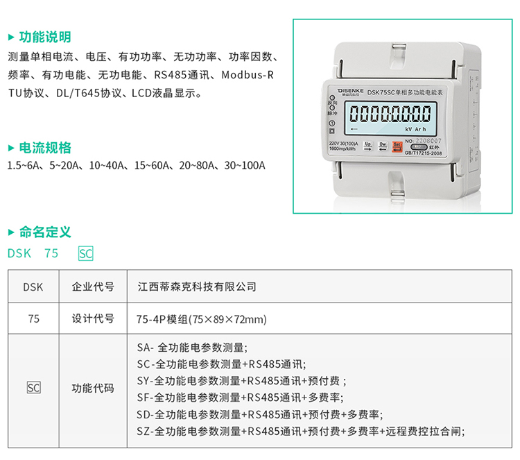 • 规格:单相导轨式电能表 485通讯