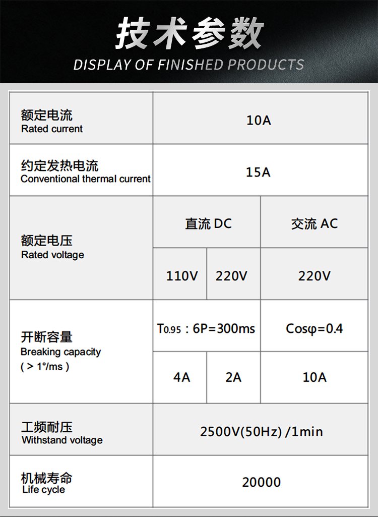 T0.95 :6P=300ms ; AC220V/10A | |||