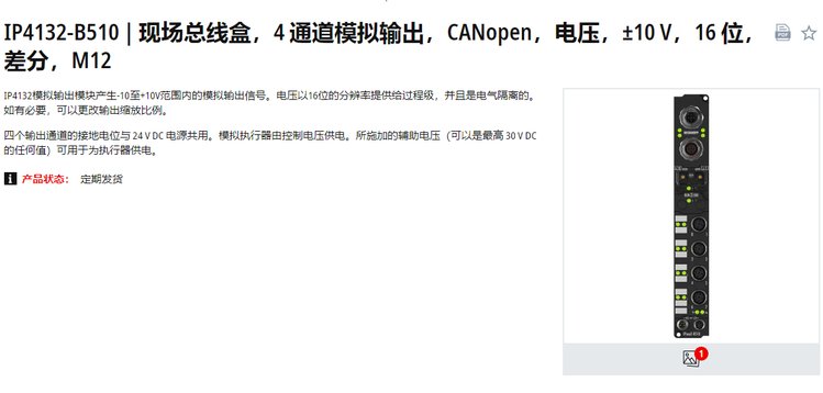倍福Beckhoff模块IP4132-B510自动化现场总线盒4通道模拟输出电压