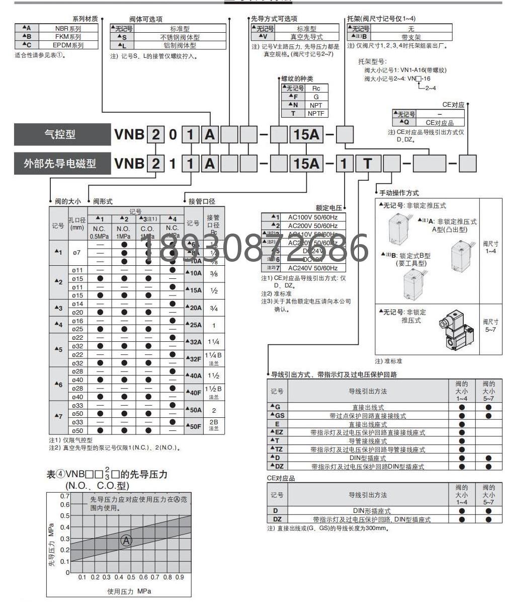 SMC二通阀VNB系列2通气控阀VNB104系列VNB304系列NCNO型