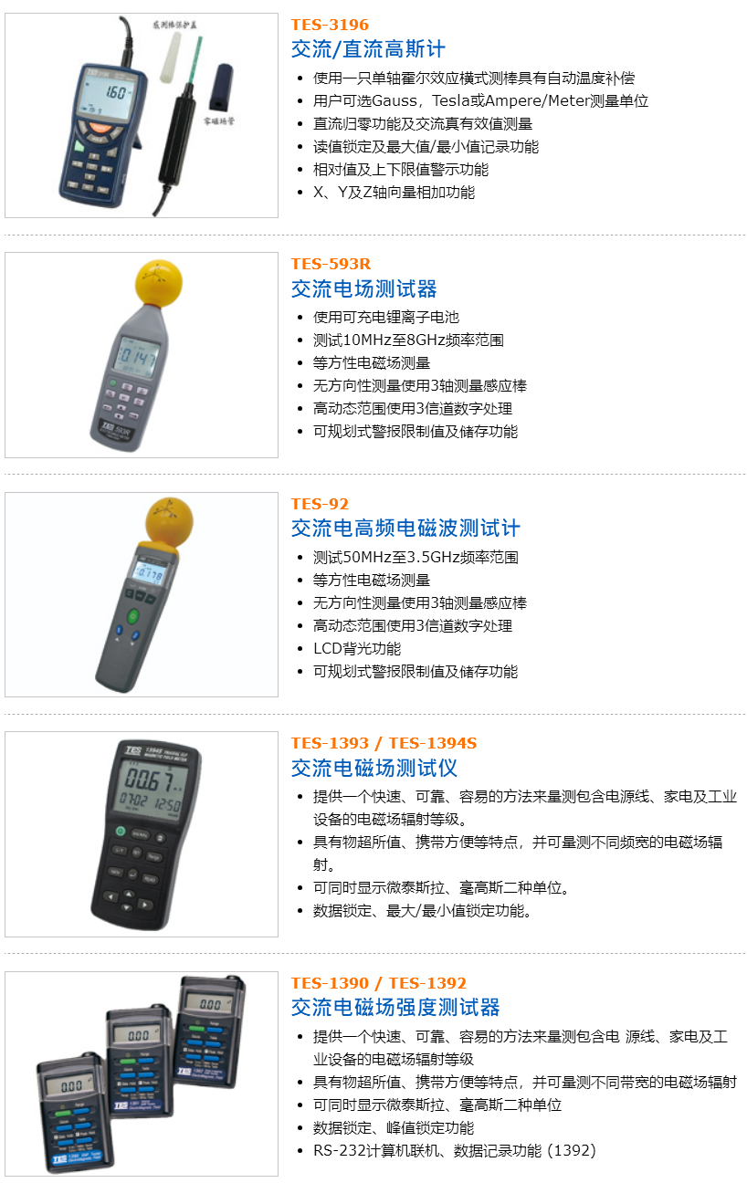泰仕TES1390/1392电磁波测试仪电磁波辐射仪家用电器辐射测量仪 是否支持加工定制 | 否 | ||
