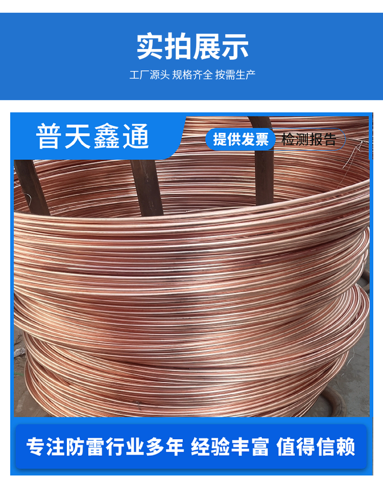 普天鑫通镀铜圆钢铜包钢防雷接地铜覆钢圆线12mm光伏接地网专供
