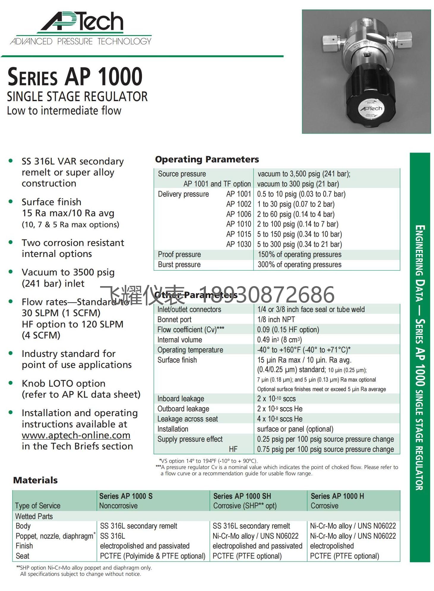 APTech主要产品: APTech压力调节器 APTech气动执行器、APTech气动阀门、APTech手动阀、APTech钢瓶调压阀. APTech高纯单级调压阀、APTech微型调压器、APTech单级高压调压阀、APTech手动隔膜阀、APTech安全阀、APTech单级减压阀、APTech双级减压阀,APTech流量开关、APTech真空发生器等等