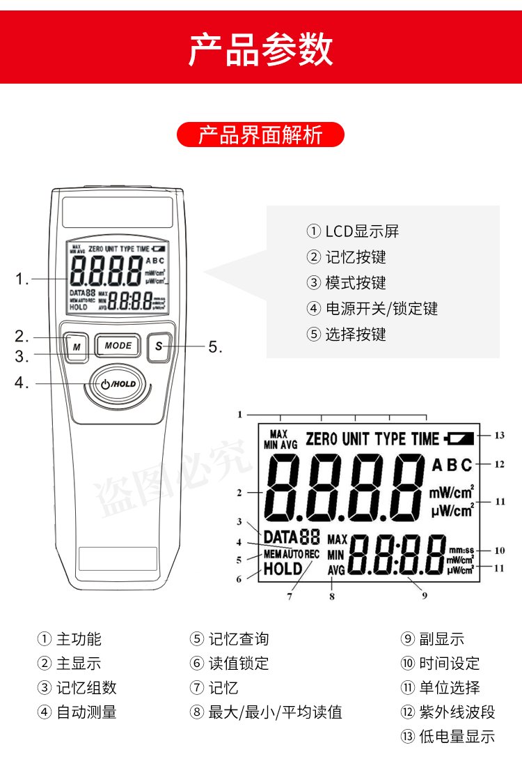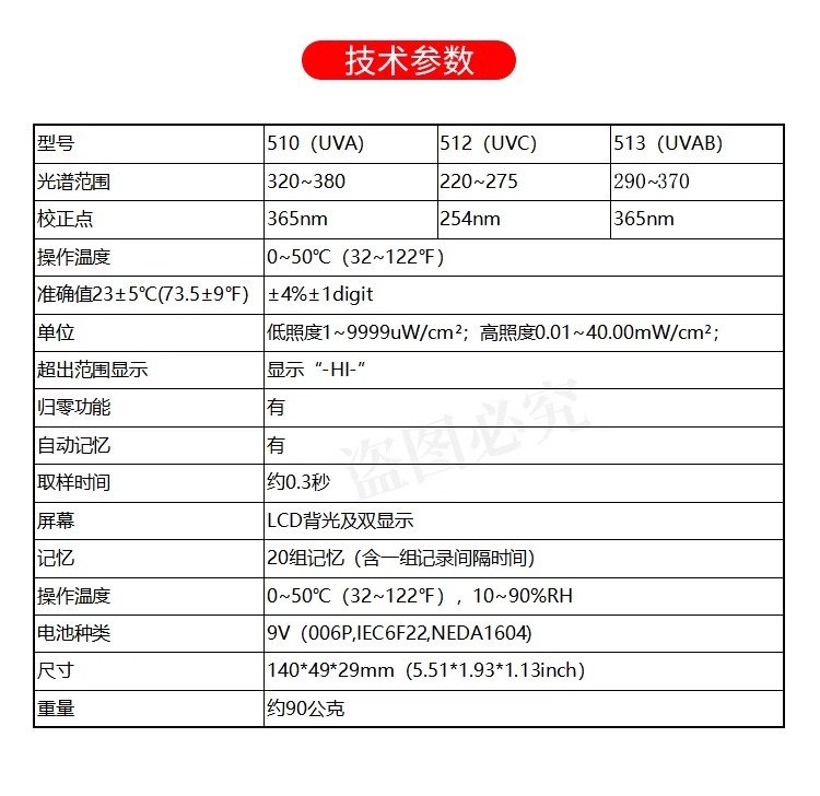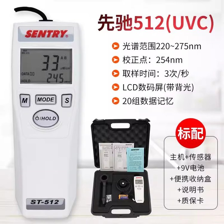 台湾先驰ST510/512/513紫外线强度照度计UVC紫外线消毒灯检测仪 品牌 | 先驰SENTRY | ||