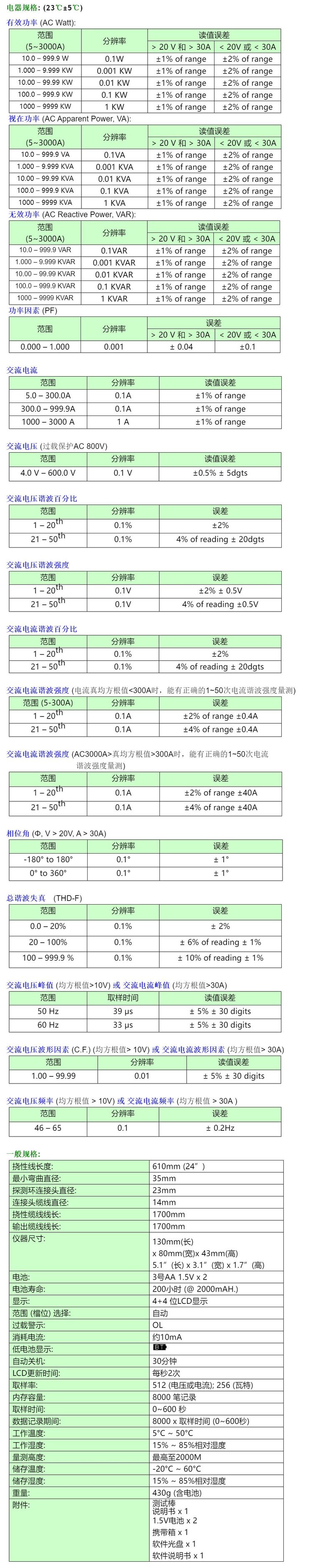 测量电流范围 | 3000A | ||