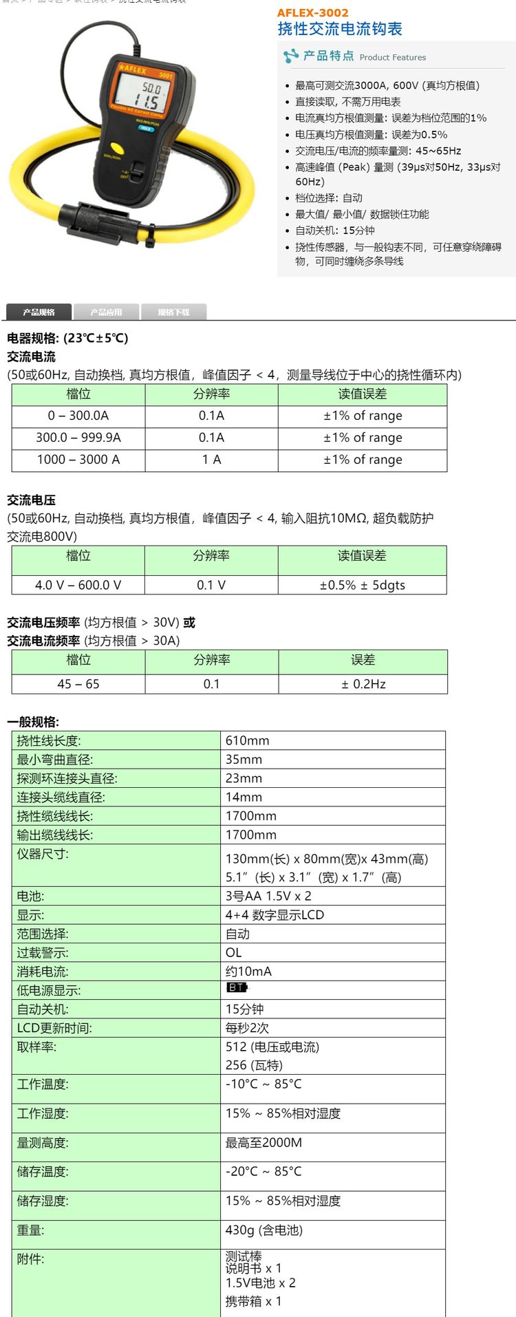 AFLEX3003/3005/6300/3030/3060可挠性电力及谐波分析钳表互感器 品牌 | 泰仕TES | ||