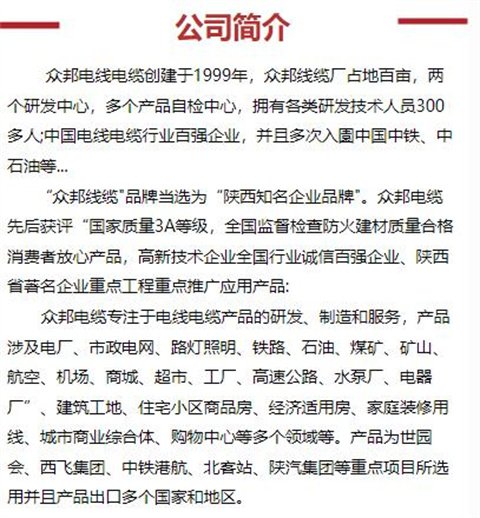 商铺名称:兰州众邦电线电缆集团有限公司