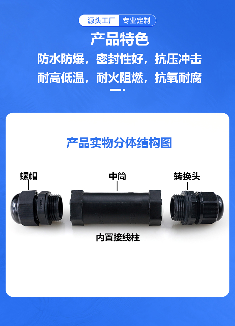 m20螺栓4芯PP公母转换航空插头快速卡线对线大功率直通防水连接器