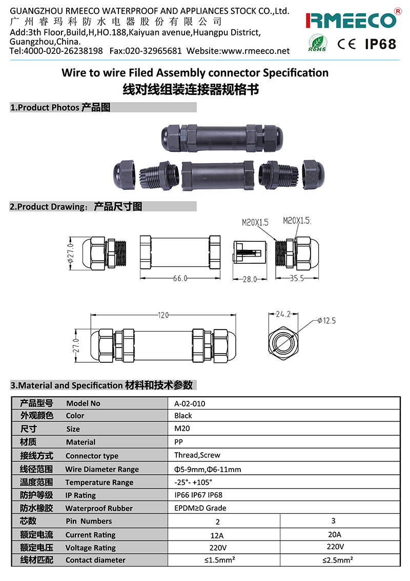 • 规格:R-010直通2芯