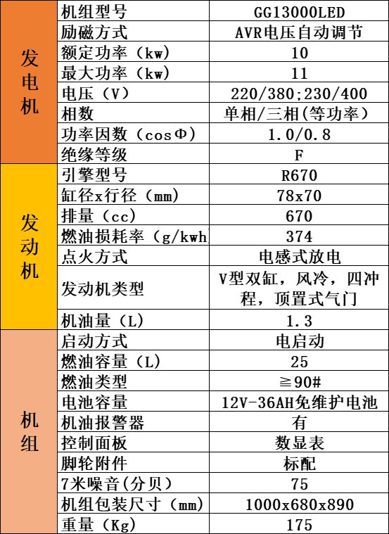 机组型号 | GG13000LED | ||