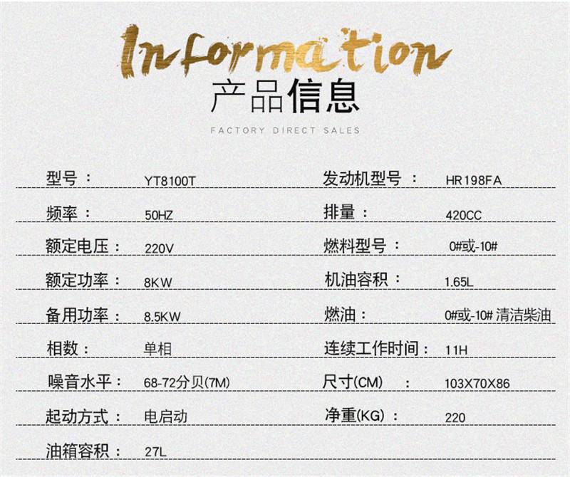 • 规格:小型柴油发电机