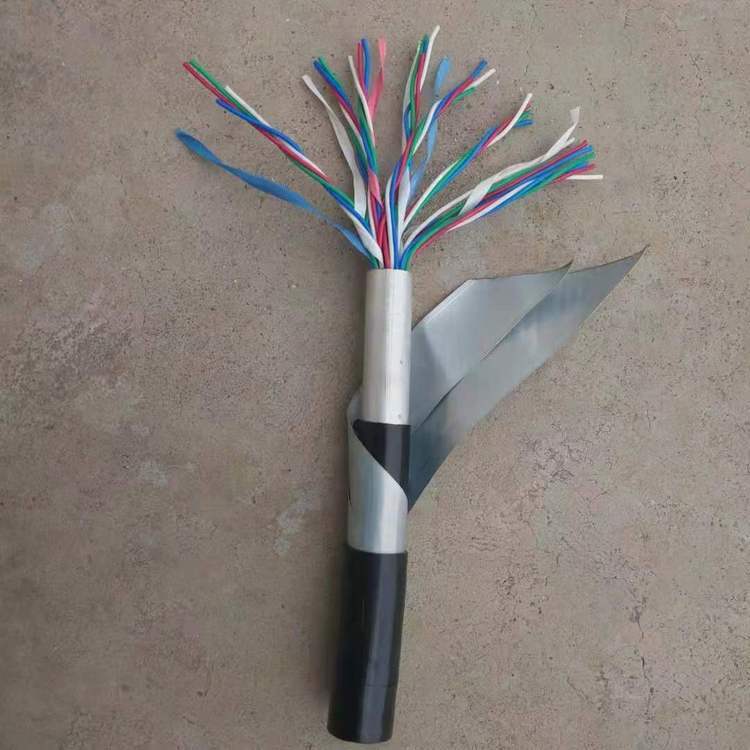 3、HYA22,铜芯实心聚烯烃绝缘挡潮层聚乙烯护套钢带铠装聚氯乙烯护套市内通信电缆