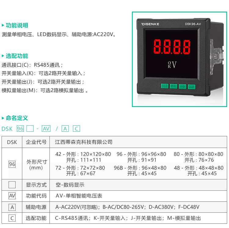 • 规格:单相电压表-液晶显示