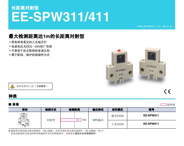 欧姆龙微型光电传感器EE-SPW311 / 411对射型 omron NPN输出 DC5~24V 品牌 | 欧姆龙omron | ||