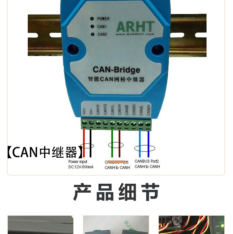 特点 | 工业级DC9-40V供电导轨安装,CAN端口接线端子链接,内置120欧电阻 | ||
