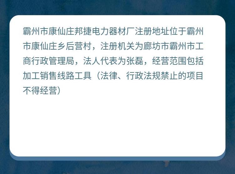 商铺名称:霸州市康仙庄邦捷线路机具制造厂