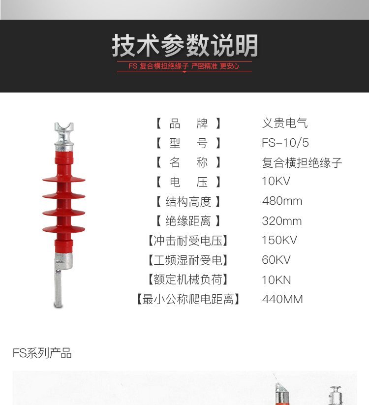 义贵电气 10kv FS-10/5复合横担绝缘子FS-35/5硅橡胶品质保证 品牌 | 义贵电气 | ||