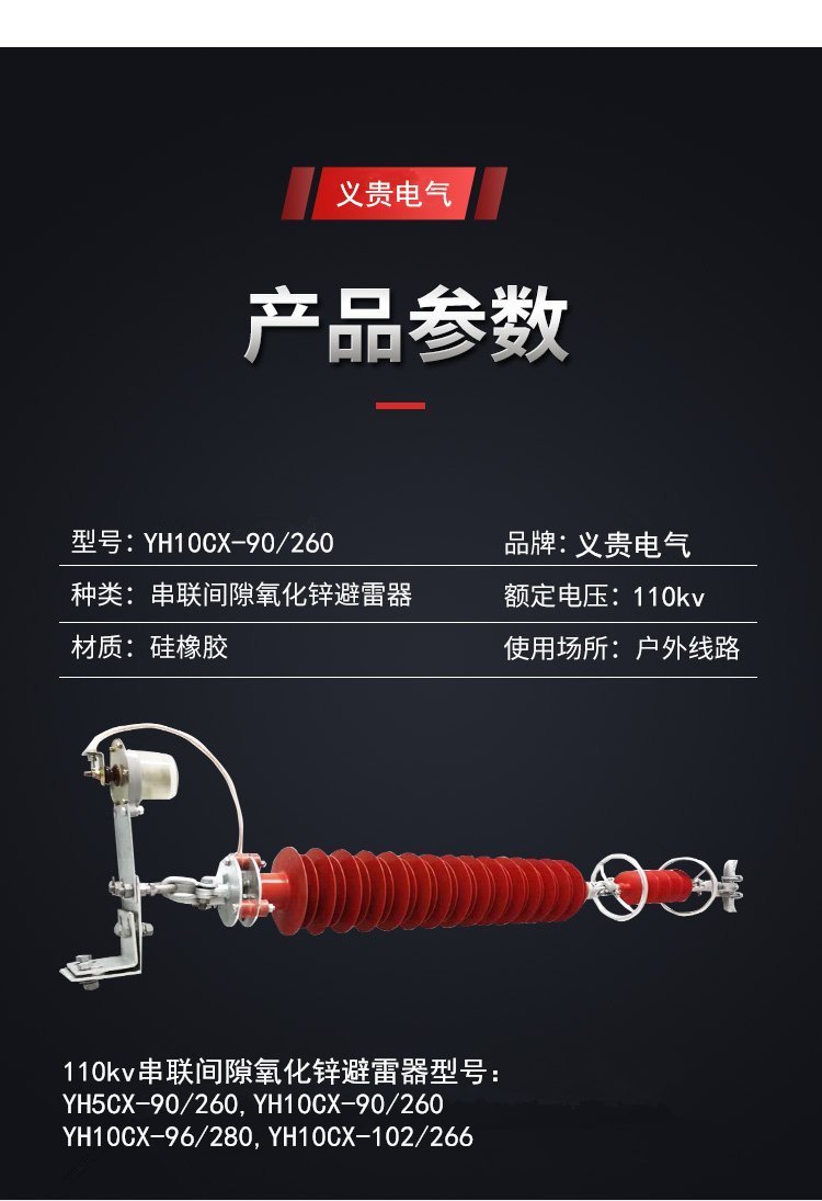 义贵电气110KV串联间隙避雷器YH10CX-90/260线路悬挂式 品牌 | 义贵电气 | ||