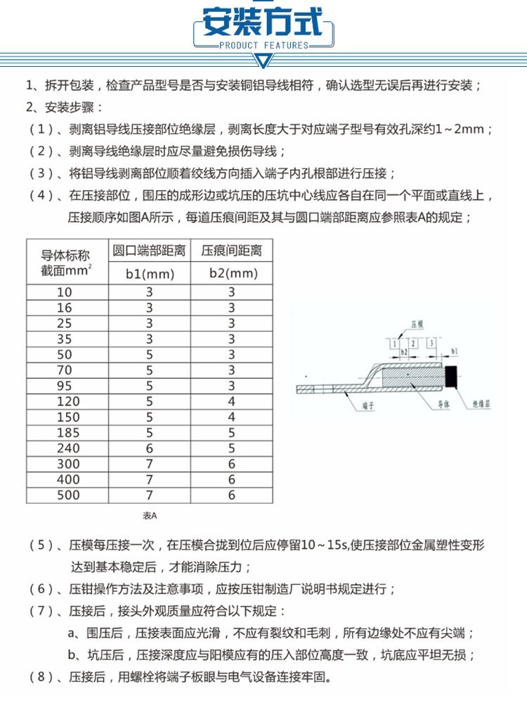 安装注意事项:1、螺钉一定要拧紧。2、电缆和铜鼻子一定要插到位并用钳子压紧