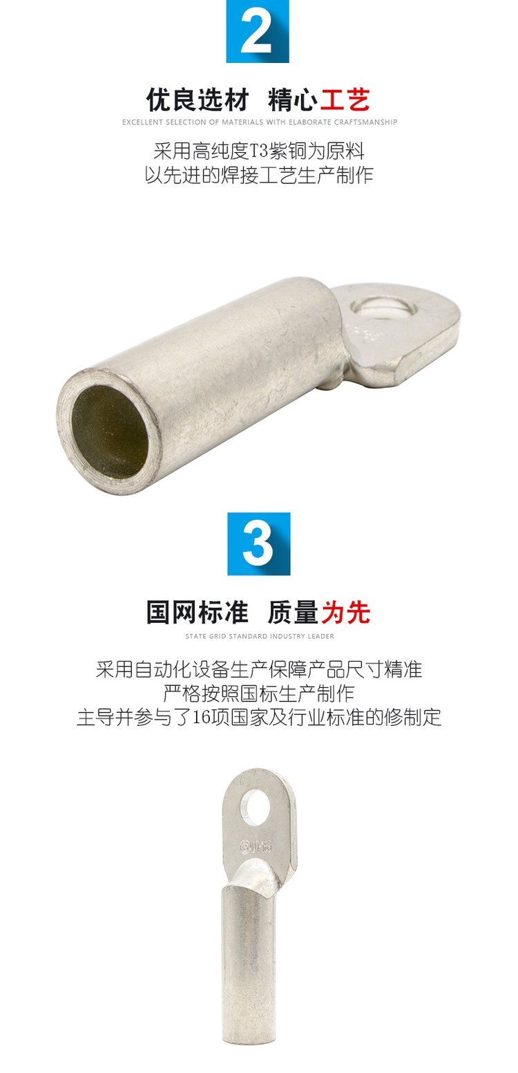 型号1:DTG,是由T3铜管冲压而成,重量略轻于DT,在不需要密封堵油的连接时可代替DT。做工比DT简单快速,价格也相对便宜。