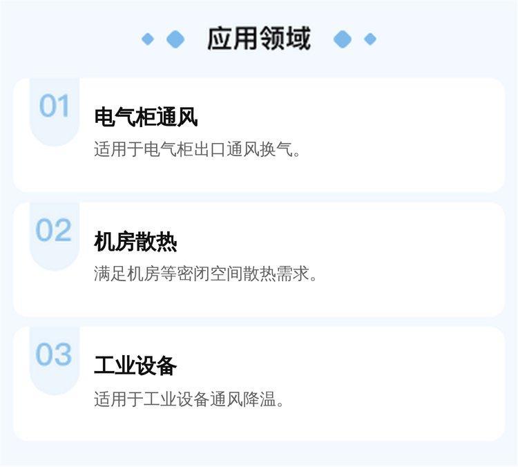 适用范围 | 电气柜、机房等需要通风换气的场所 | ||